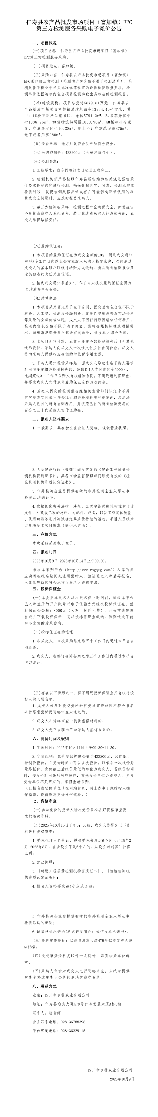 仁壽縣農產品批發市場項目(富加鎮)EPC第三方檢測服務采購競價公告